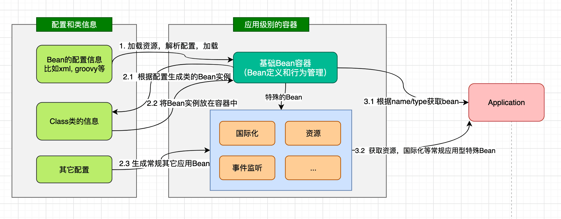 - 根据Bean的定义加载生成Bean的实例,并放置在Bean容器中