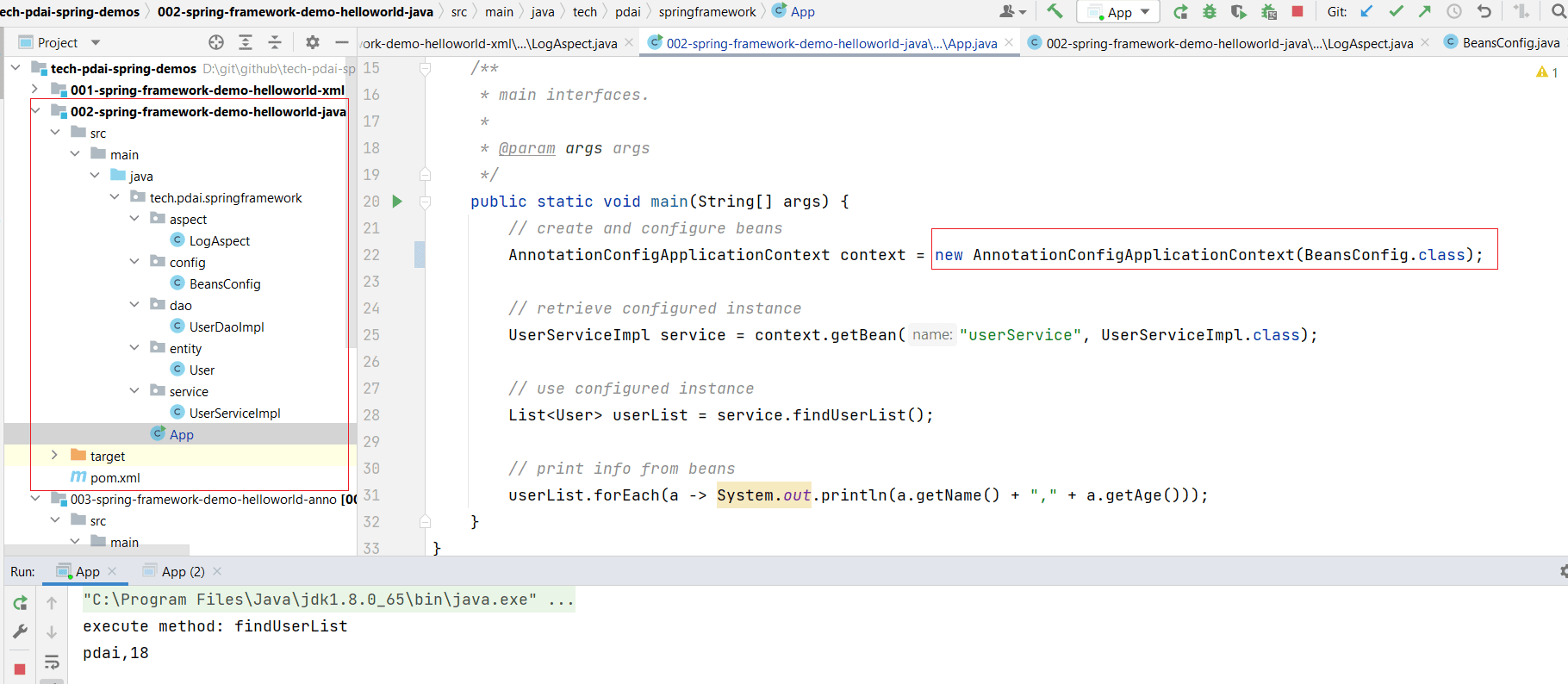 - User,UserDaoImpl, UserServiceImpl,LogAspect不用改