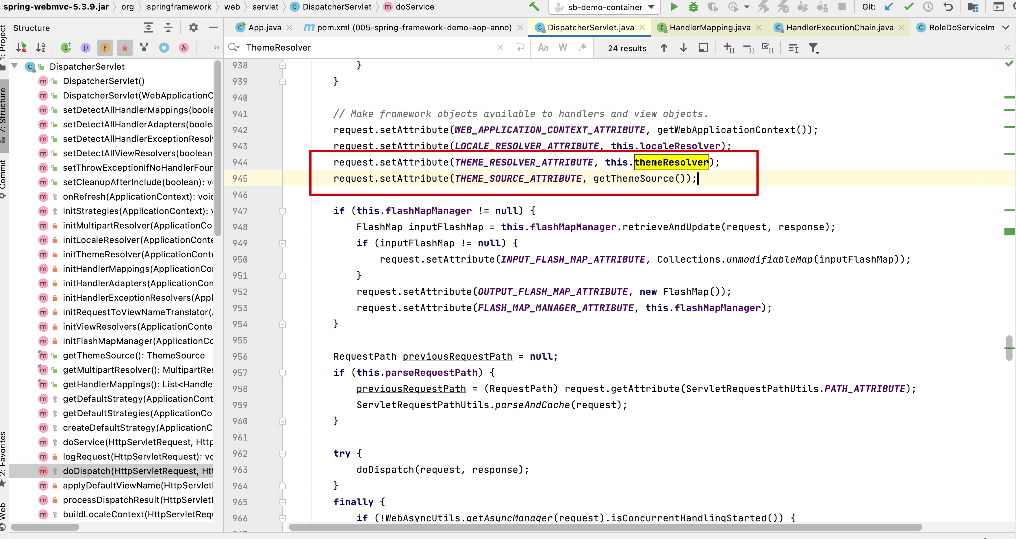 - DispatcherServlet------>HandlerMapping, HandlerMapping 将会把请求映射为 HandlerExecutionChain 对象(包含一 个Handler 处理器(页面控制器)对象、多个HandlerInterceptor 拦截器)对象,通过这种策略模式,很容易添加新 的映射策略;