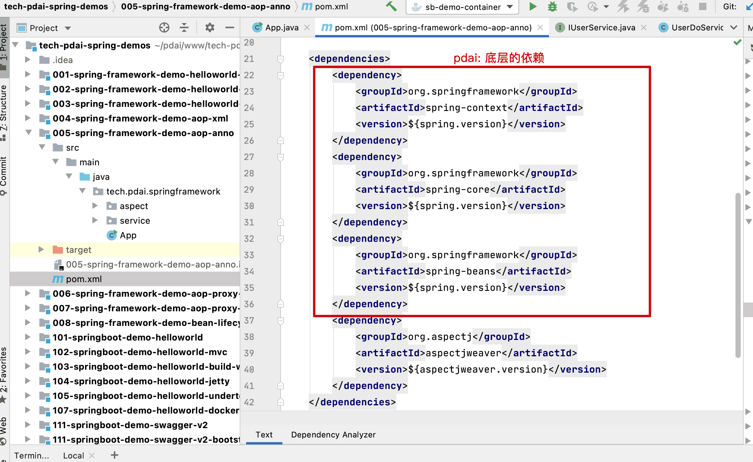 Demo中core container中包使用如下