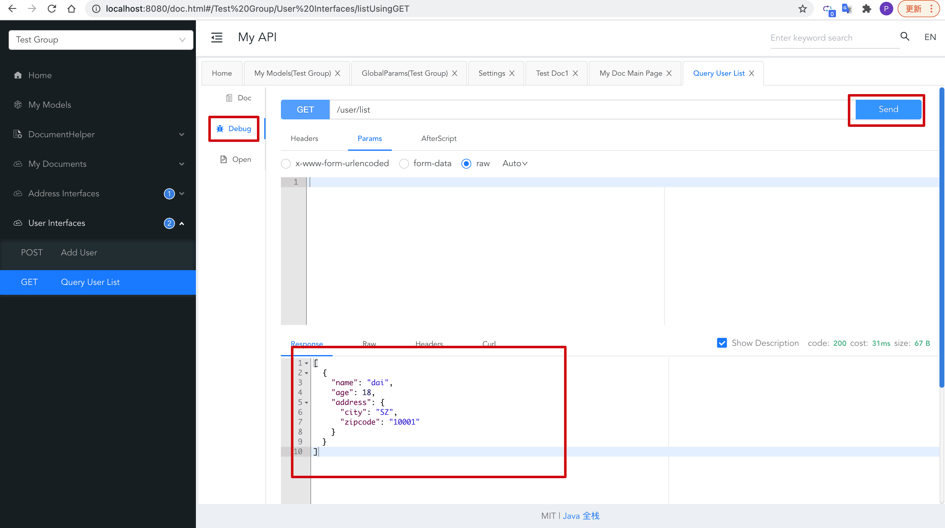 - 通过 Swagger 页面,我们可以直接进行接口调用,降低了项目开发阶段的调试成本。
