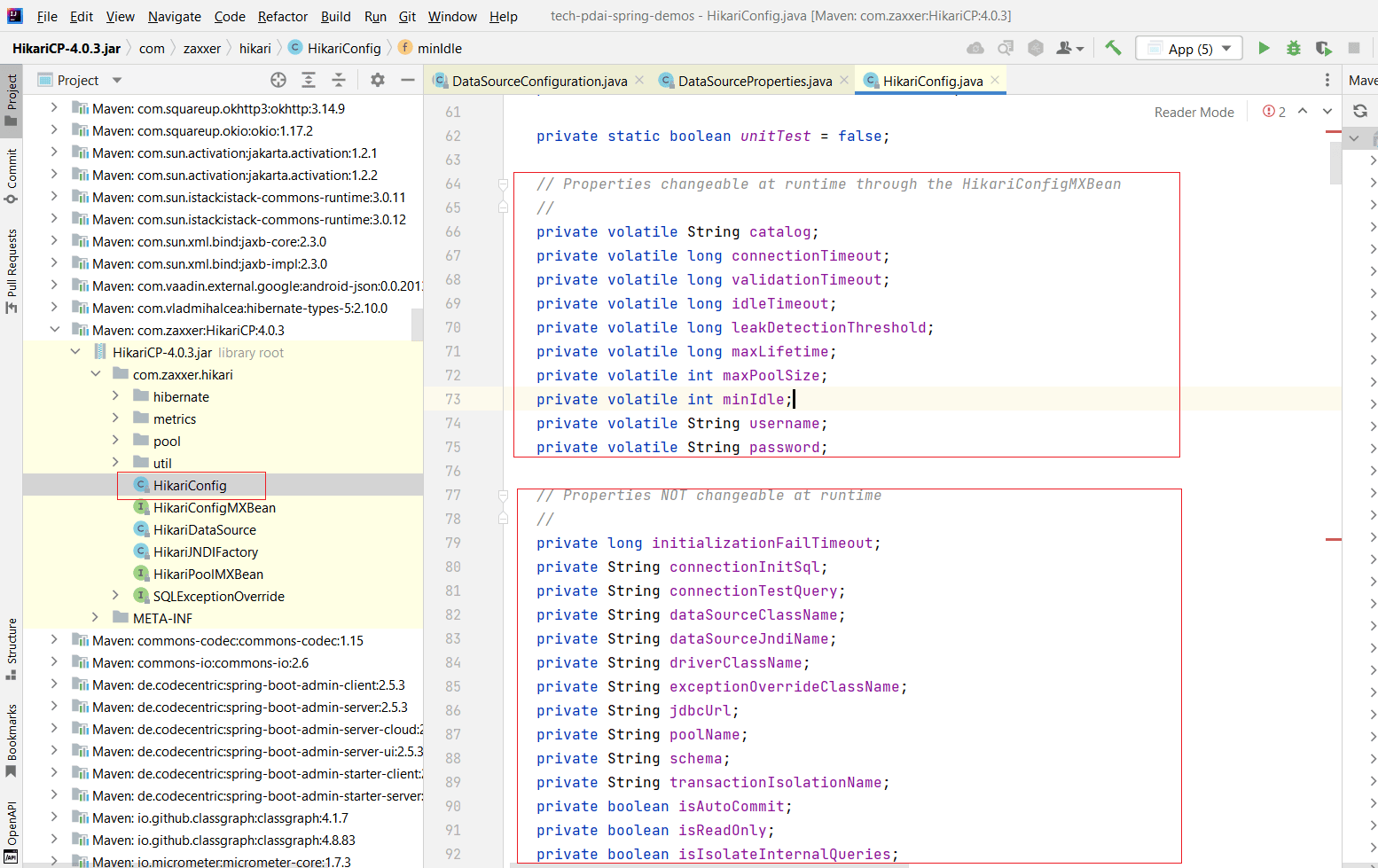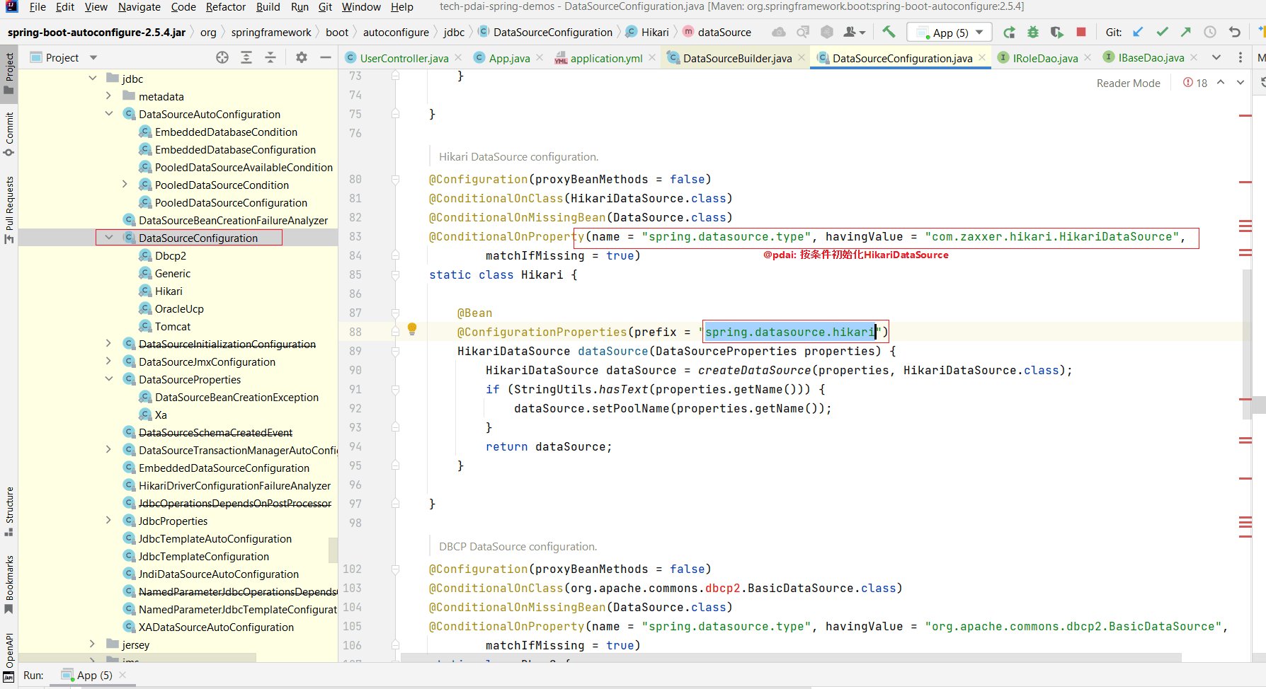 然后可以找到HikariCP数据源的配置