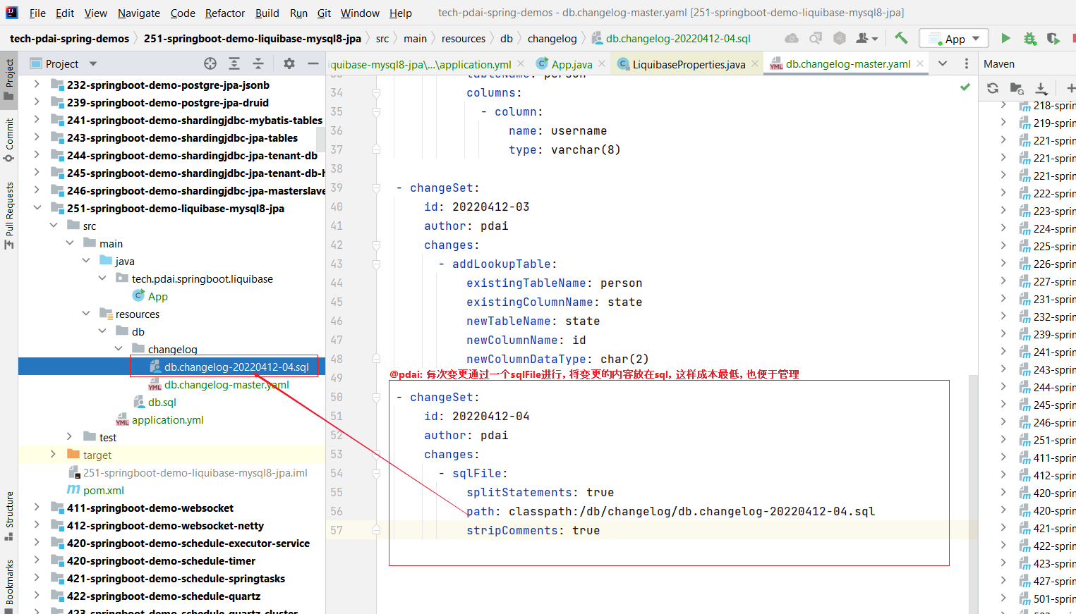 这里主要介绍基于SpringBoot集成liquibase来管理数据库的变更。