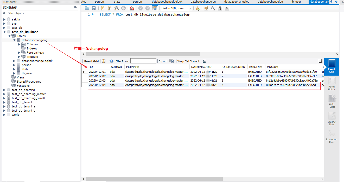 2022-04-12 20:41:20.783 INFO 8476 --- [ main] liquibase.changelog : Reading from test_db_liquibase.DATABASECHANGELOG