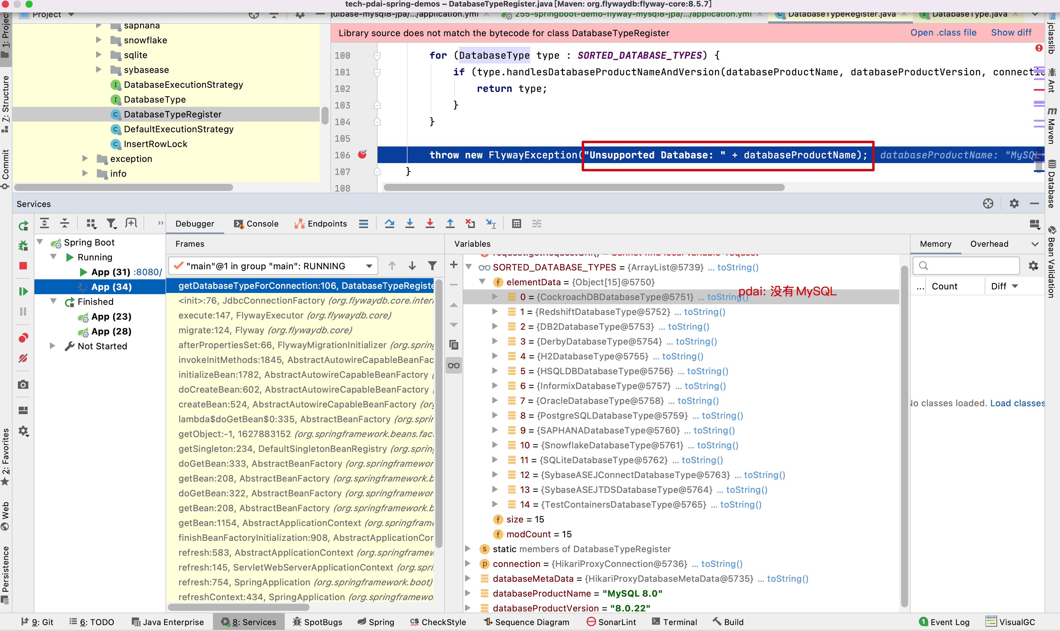 at org.flywaydb.core.internal.database.DatabaseTypeRegister.getDatabaseTypeForConnection(DatabaseTypeRegister.java:106) ~[flyway-core-8.5.7.jar:na]