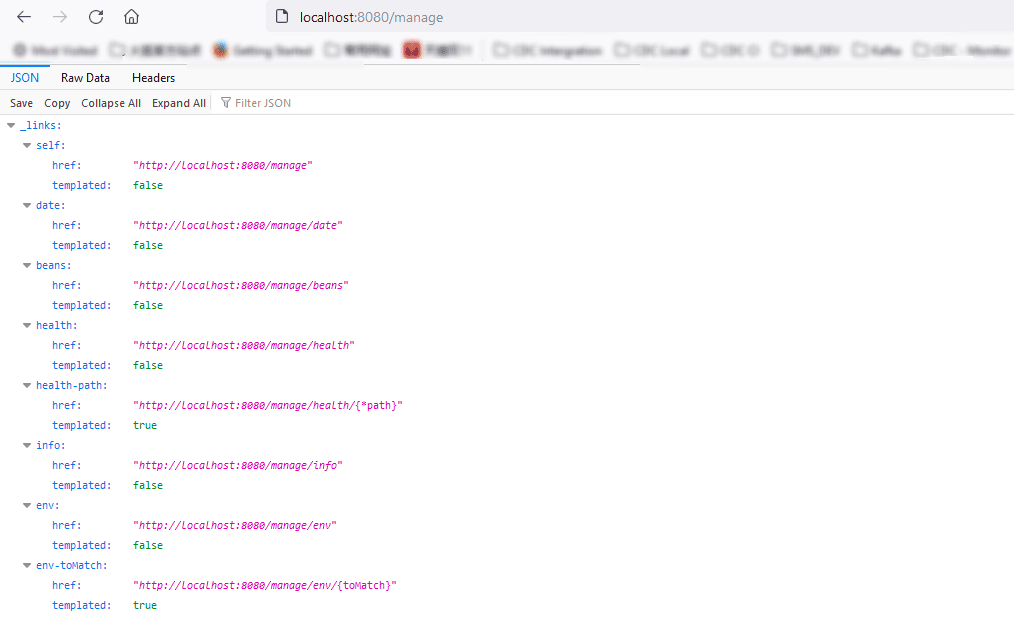 上述配置只暴露info,health,env,beans四个endpoints, web通过可以/manage访问,