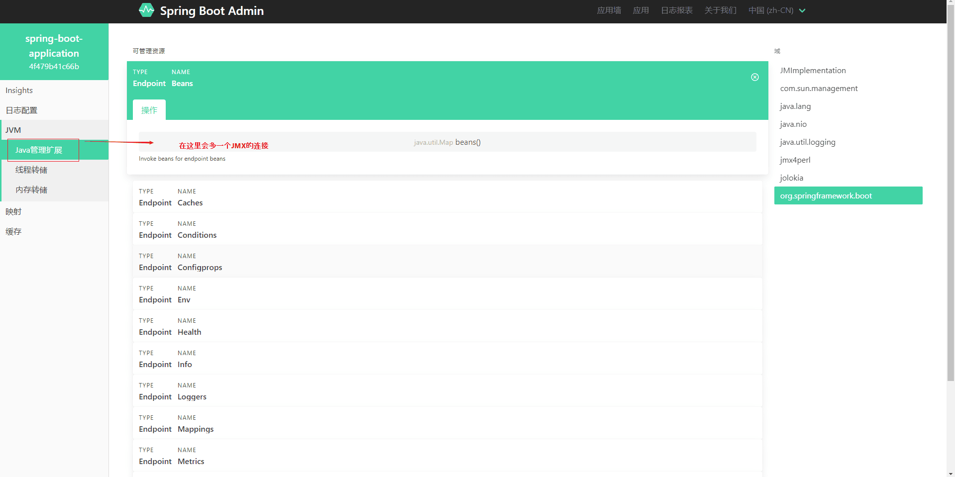刷新SBA UI就可以看到增加了JMX相关的连接